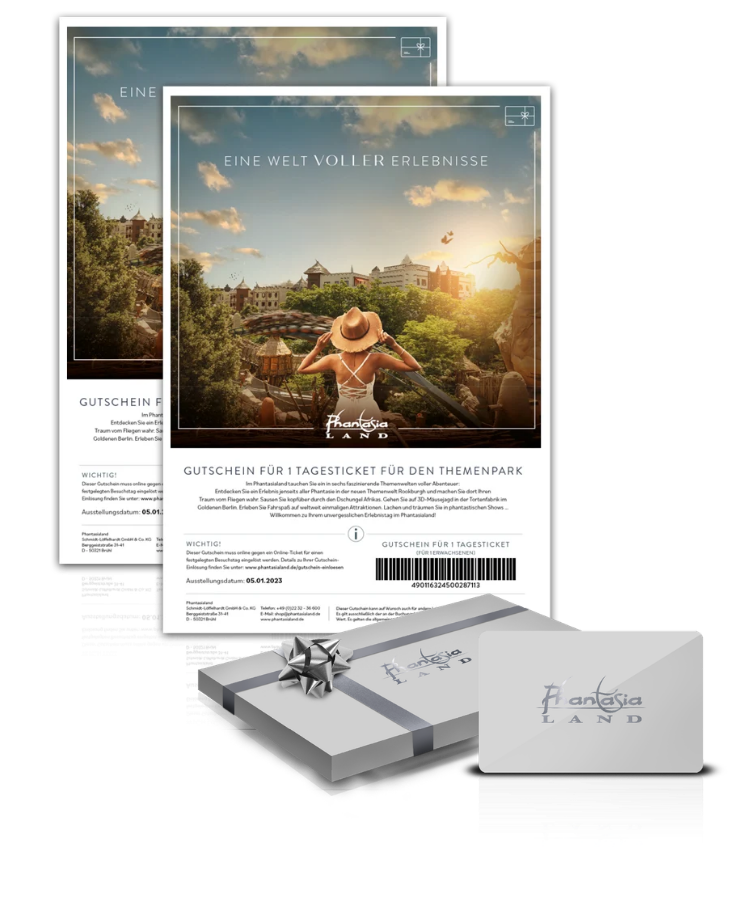 Eröffnen Sie Ihrem Team oder den Geschäftspartnern eine Welt voller Möglichkeiten: Mit einem Phantasialand Wertgutschein können die Beschenkten frei wählen – und Sie liegen immer goldrichtig!