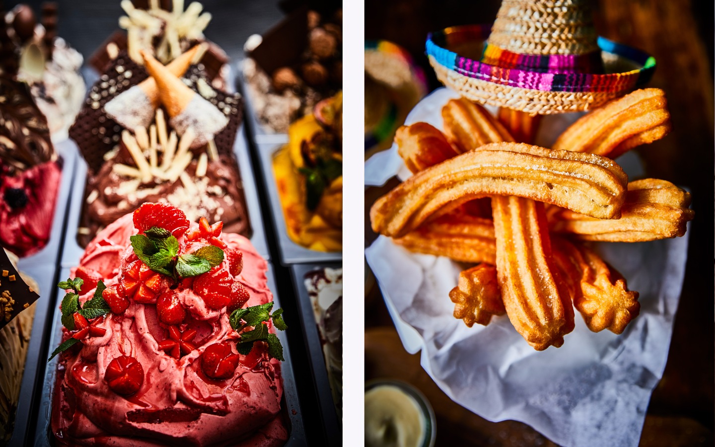 Wir präsentieren – die veganen süßen Stars im Phantasialand: Mango-, Erdbeer- und Zitroneneis im Eis-Café Annie Himmelreich. Churros mit Zimt und Zucker in Mexico und die Zartbitter-Fruchtspieße noch dazu! Manchmal, da muss es einfach süß sein ...