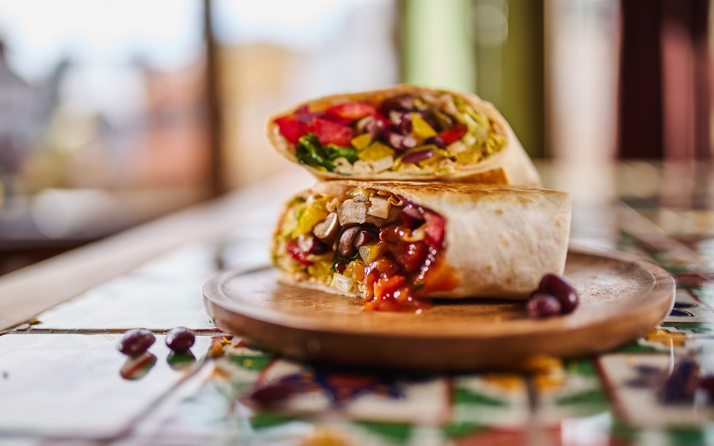 Die vegane Grilled Fajita feiert eine Party auf der Zunge – eingeladen sind: Tomatenreis, Salsa, Fajita-Gemüse, Kidneybohnen und Koriander. Oder wie man in Mexico sagt: ¡Buen provecho!